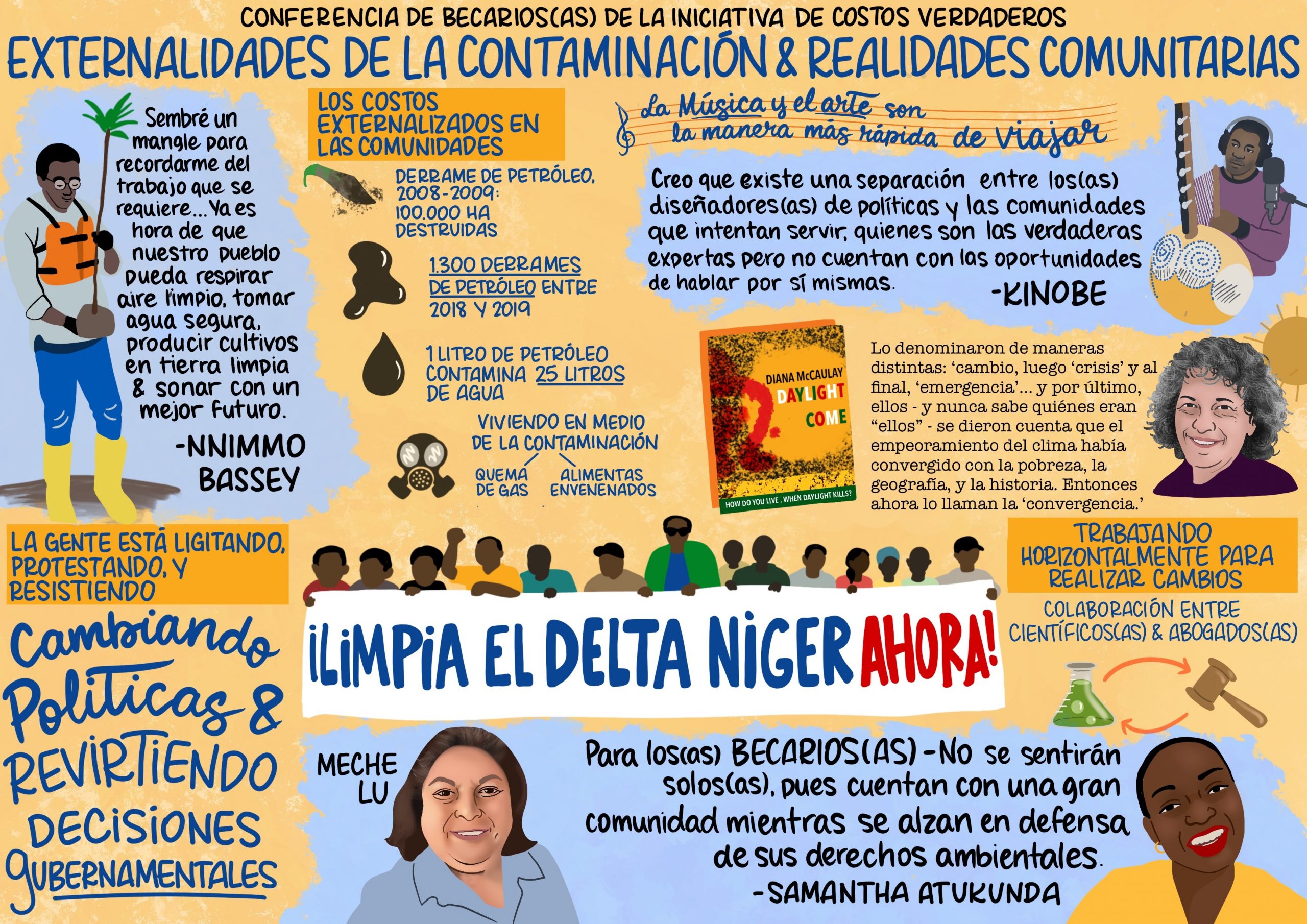 El 6 de octubre de 2021, la Iniciativa de Costos Verdaderos convocó nuestra inaugural Conferencia de Becarios(as) TCI: Externalidades de la Contaminación & Realidades Comunitarias. Nuestras metas para este evento mundial, eran: i) desarrollar un sentido de comunidad; ii) destacar la incidencia increíble de nuestra clase mundial de Becarios(as) y iii) pasar tiempo los unos(as) con los otros(as) en celebración, conversación, música y poesía. La conferencia constó de dos sesiones. La primera parte, la plenaria, contó con la asistencia de 77 personas – socios concesionarios, financiadores y aliados(as) y amigos(as) de TCI – provenientes de 23 países y representando a por lo menos 37 organizaciones alrededor del mundo. La segunda parte, la sesión únicamente para los(as) Becarios(as), fue designada como un espacio en el cual los(as) Becarios(as) podrían compartir sus experiencias y relacionarse con sus pares directa y abiertamente.